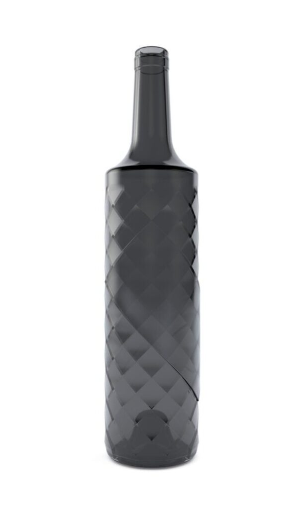 Diseñada para contener 75 cl y cumplir con los estándares internacionales de exportación, la botella mantiene dimensiones similares a las habituales del mercado, facilitando su almacenamiento, transporte y paletización. Su diseño es totalmente compatible con los procesos industriales de soplado de vidrio y con cierres de corcho estándar, garantizando su viabilidad para la producción a gran escala.