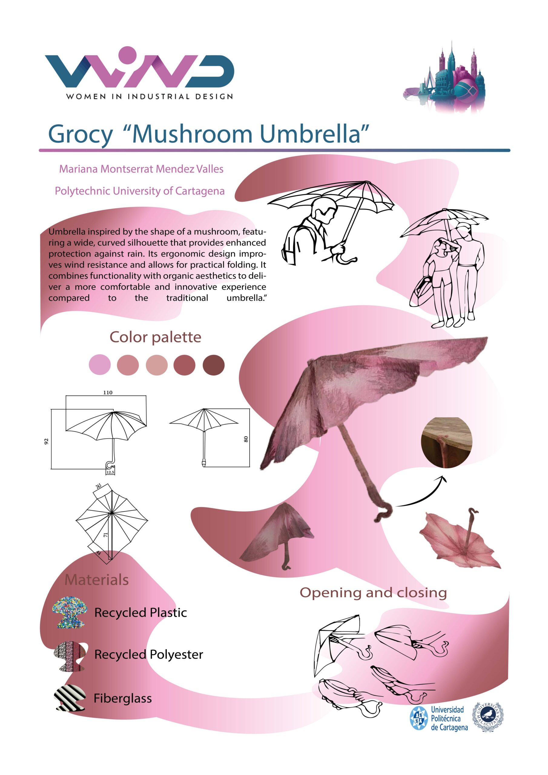 El proyecto Grocy es una propuesta de diseño industrial conceptual que plantea la reinvención del paraguas a partir de la bioinspiración en los hongos, buscando transformar un objeto cotidiano en una experiencia funcional, estética y emocional. En un contexto urbano dominado por la utilidad, Grocy explora cómo el diseño puede encantar lo ordinario mediante la integración de principios naturales.