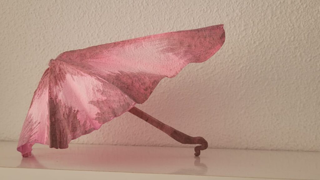 Entre sus principales características destacan una morfología innovadora, mayor protección lateral contra la lluvia, un mango ergonómico con posibilidades de enganche y una alta identidad visual que convierte al paraguas en una pieza de statement. En cuanto a materiales, se propone el uso de poliéster reciclado (rPET) con recubrimiento impermeable, integrando criterios de sostenibilidad y reforzando el compromiso del proyecto con el cuidado del medio ambiente.