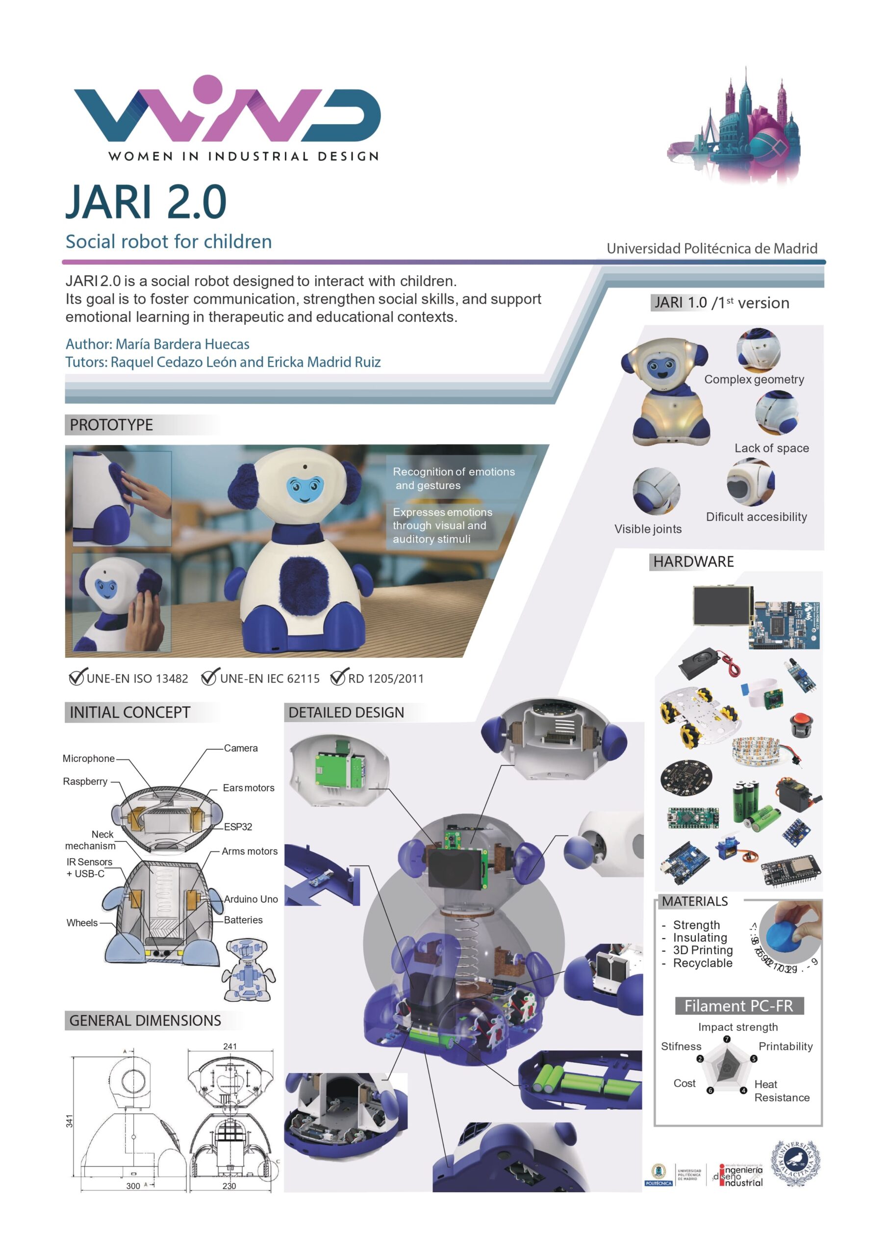 JARI 2.0 es un robot social diseñado específicamente para la interacción con niños, desarrollado como una evolución del proyecto JARI (Joint Attention through Robotic Interaction) del Grupo de Investigación MAD-Robotics de la Universidad Politécnica de Madrid.