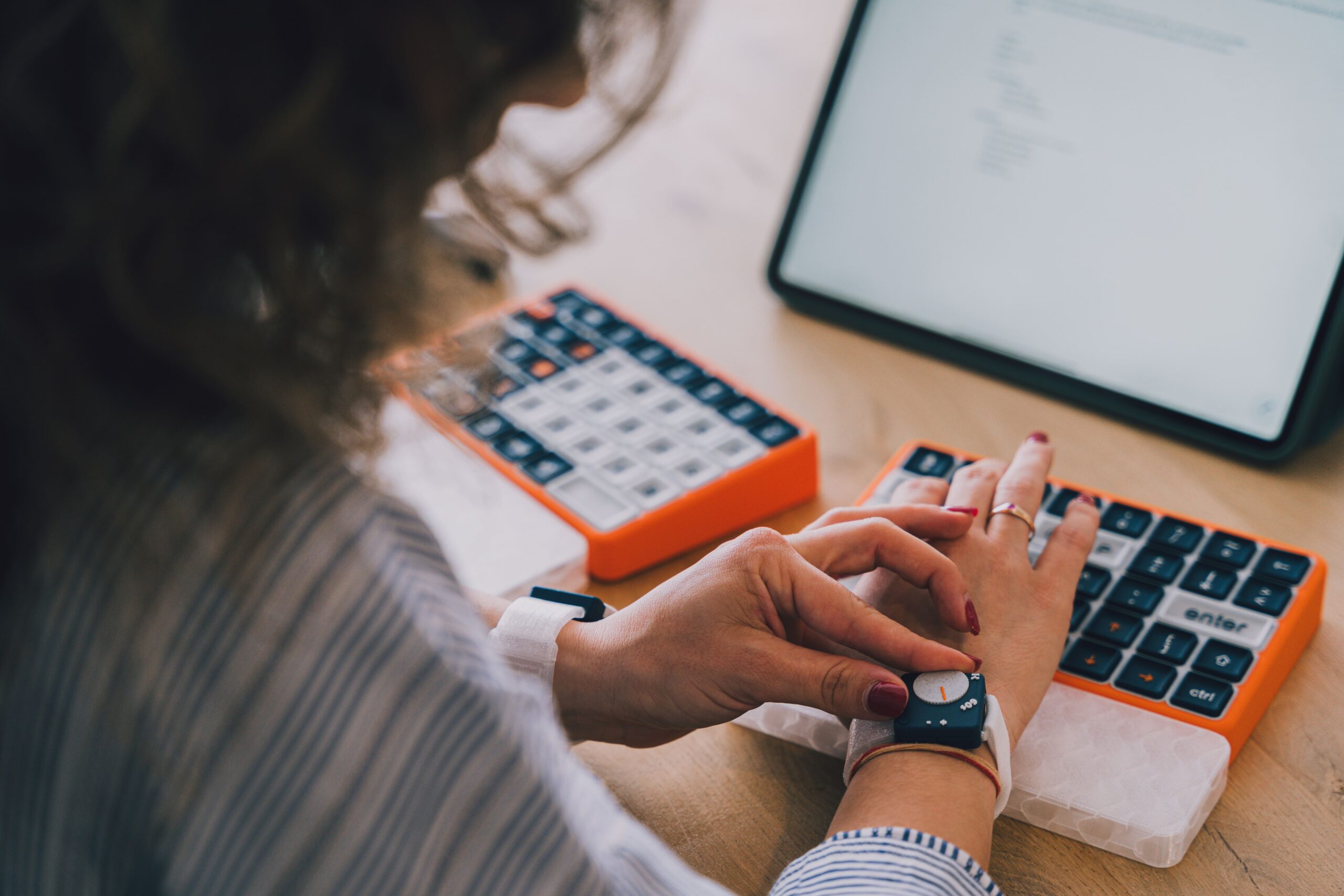 OnCue es la solución: un teclado modular y adaptativo diseñado por Alessandra Galli en la Universidad Tecnológica de Delft (TU Delft), que empodera a los usuarios de tecnología inclusiva y accesible.