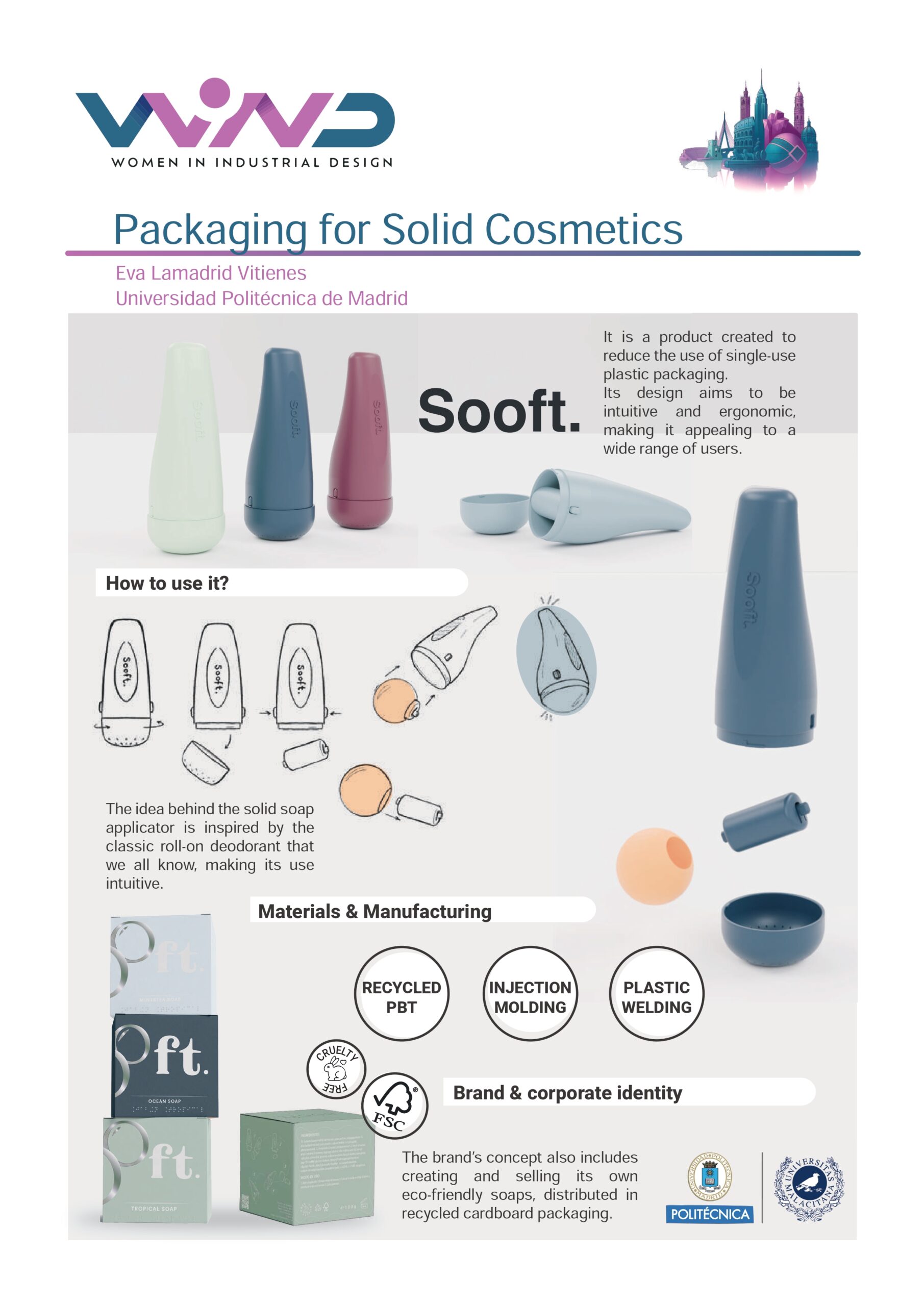 El proyecto consiste en el diseño y desarrollo de un envase reutilizable destinado a productos cosméticos sólidos, con el objetivo principal de reducir el impacto ambiental asociado al uso de envases plásticos de un solo uso.
