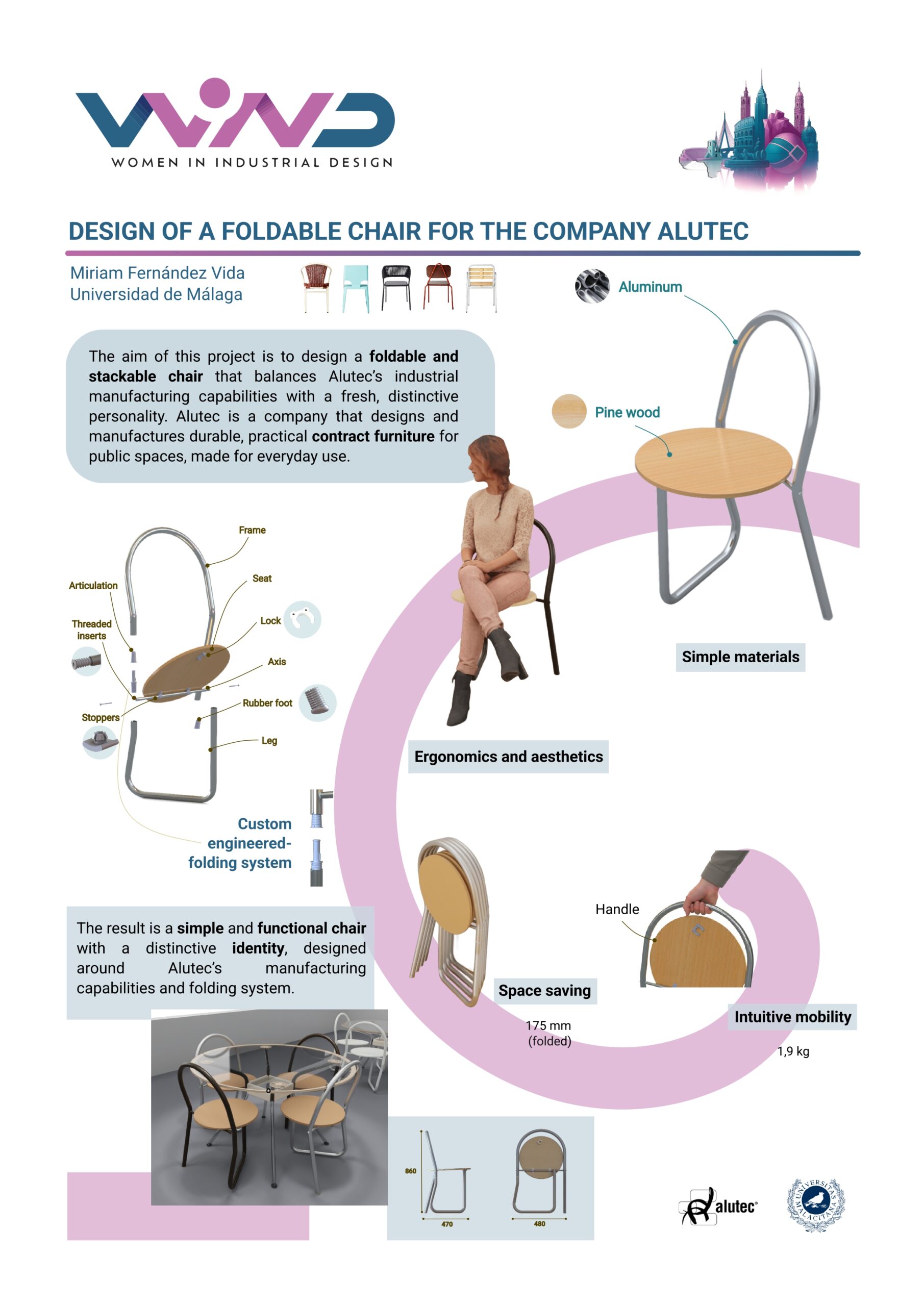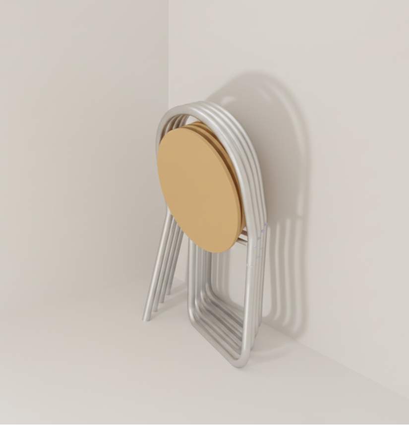 Este proyecto presenta el diseño de una silla plegable y apilable desarrollada específicamente para Alutec, pensada para un uso contract en espacios públicos.
