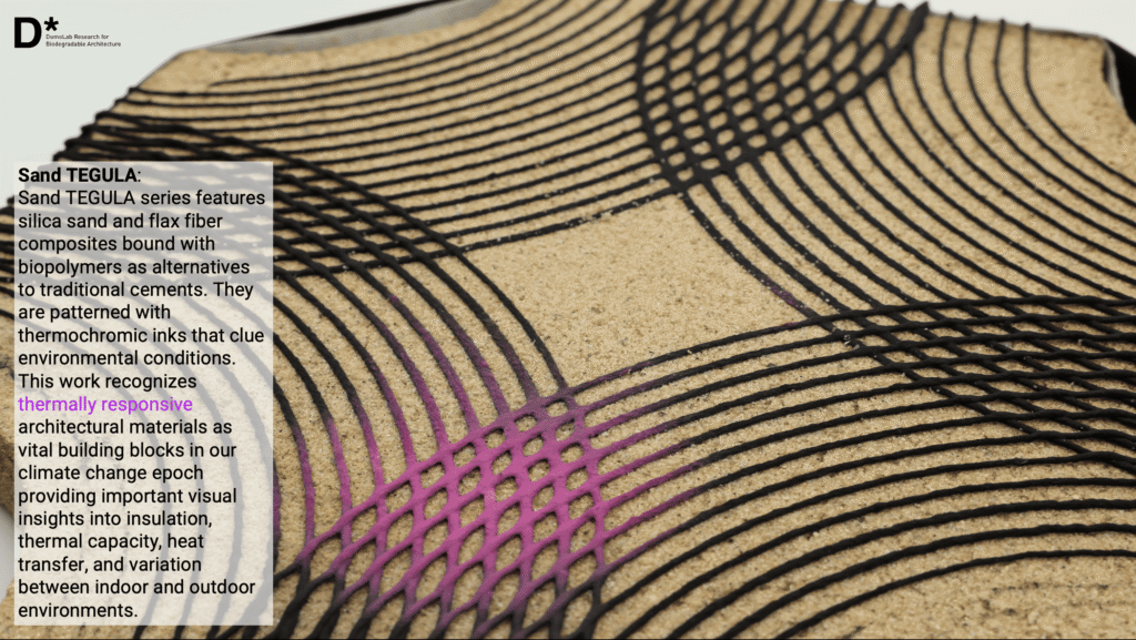 En conjunto, TEGULA propone una nueva generación de materiales arquitectónicos biocompatibles, sensoriales y ambientalmente responsivos.
